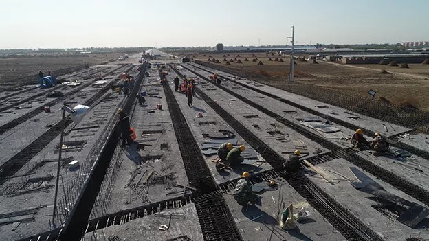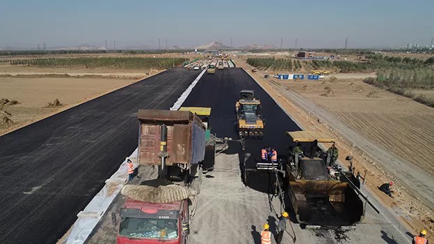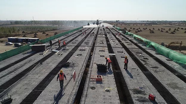 迁曹高速雷庄互通立交至沿海高速段保通车建设,工程紧,任务重,总公司成立前线指挥部,明确职责,科学组织,优化方案,多措并举,抓好工程建设。在热火朝天的迁曹高速建设现场,项目部全体人员发扬公司铁人精神,立军令状,铮铮誓言,全力以赴奋战迁曹,确保通车目标实现。迁曹高速不仅为唐山市曹妃甸区的崛起贡献力量,更是辛勤耕耘,砥砺前行,绘制河北高速壮美蓝图的见证者,让无人机带你领略奋战中的迁曹。