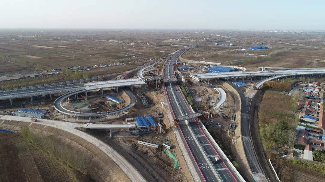这里是北京新机场北线高速公路(廊坊段)项目建设现场。凭高而望,只见各路桥段正抓紧施工,整个工程业已接近尾声。